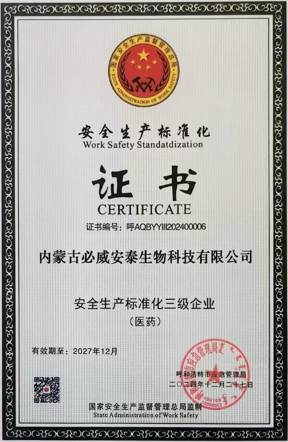 內蒙古必威安泰生物科技有限公司成立于2008年6月,位于呼和浩特市和林格爾乳業(yè)開發(fā)區(qū),占地123畝,注冊資本1.25億元。公司專注于生物疫苗研發(fā)生產,是原農業(yè)部批準的首家采用細胞懸浮培養(yǎng)技術生產口蹄疫疫苗的企業(yè),擁有兩條7550升德國進口懸浮培養(yǎng)生產線,年產能20億毫升,覆蓋多種動物疫苗。公司被認定為自治區(qū)“企業(yè)研發(fā)中心"“重點龍頭企業(yè)單位”“企業(yè)技術中心"和國家"高新技術企業(yè)”,“口蹄疫基因標記疫苗”獲全國商業(yè)科技進步一等獎。2024年,瑞普生物控股后,公司構建全生命周期質量管控體系,獲多項國際權威認證,包括ISO9001、ISO14001、ISO45001、ISO5001及獸藥GMP、CNAS、GCP、GSP等。